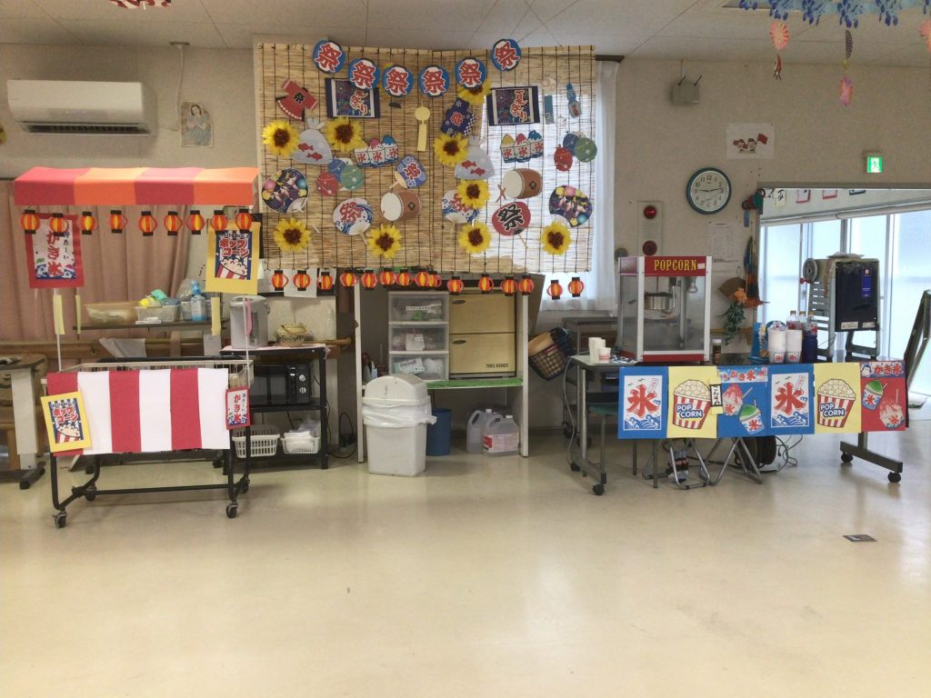夏祭り実施しました!🍧 8月といえば、、、夏祭り! 桜井寮では盆踊りや屋台(かき氷、ポップコーン)等夏らしい出し物を行いました。 職員の飾りつけどうでしょうか?💛利用者様の笑顔をたくさん見れてとても幸せでした!